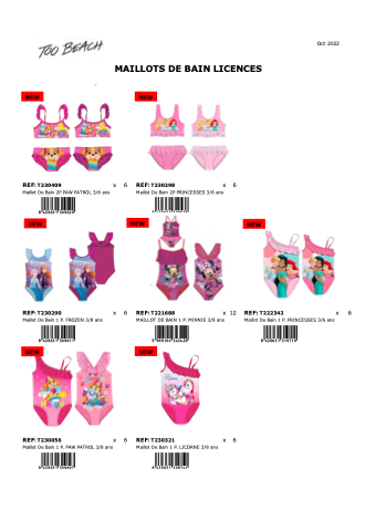 REF: T230298 x 6 Maillot De Bain 2P PRINCESSES 3/6 ans