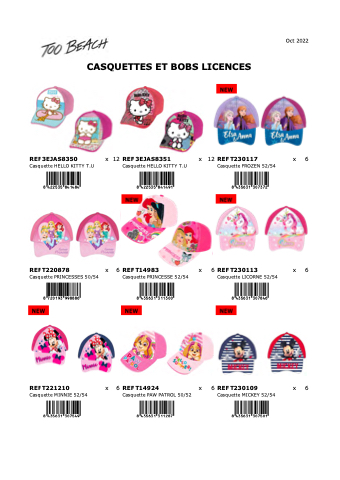 x 12 REF 3EJAS8351 Casquette HELLO KITTY T.U