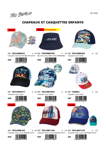 REF T621088251 x 12 REF T620988750 x 12 REF T621088204 Casquette Toile Fille TIE AND DYE 52/54 Bob Toile Junior SURF 52/54 REVERSIBLE Casquette Junior 52/54