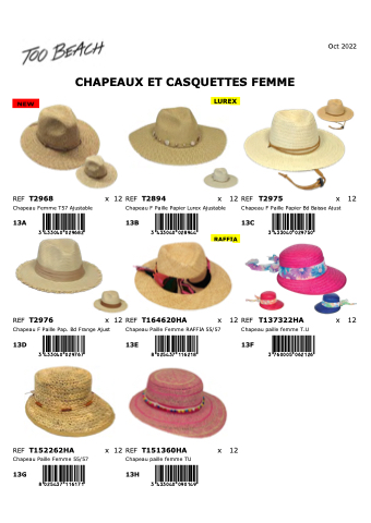 x 12 REF T2894 x 12 REF T2975 x 12 Chapeau F Paille Papier Lurex Ajustable Chapeau F Paille Papier Bd Baisse Ajust