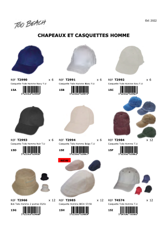 REF T2994 x6 Casquette Toile Homme Beige T.U